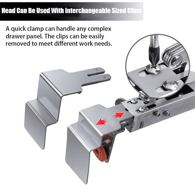 2mm Thick Head Clamp: The 2mm thickness provides a strong grip, ensuring that your drawers stay in place during installation or removal. Two interchangeable collets of various sizes are available for your use.