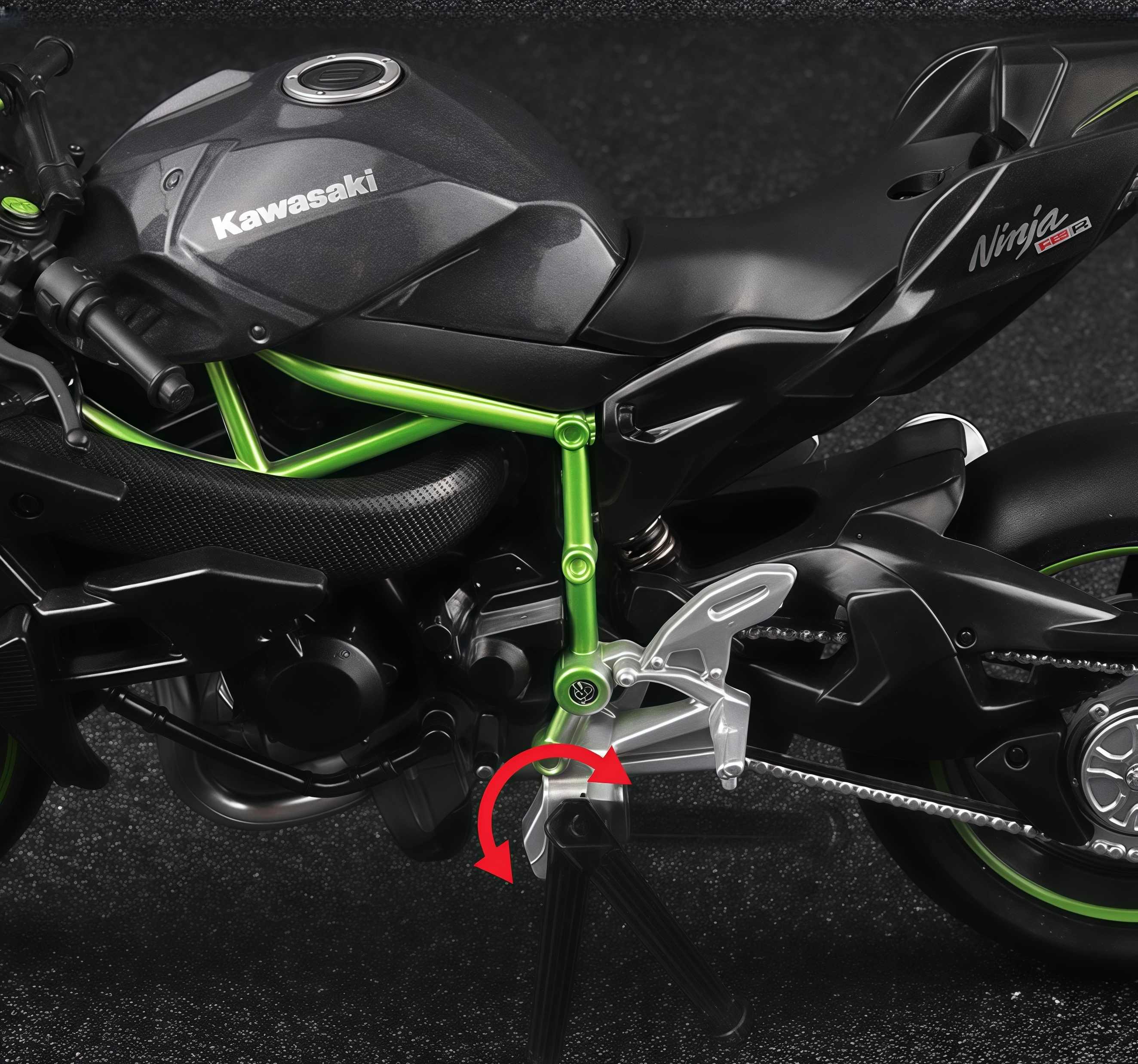 ☑︎【 Function 】 : The front wheels of the motorcycle model rotate along with the handle. The front wheels can rotate flexibly. The tripod is retractable. Simulate the shock absorption effect of the front and rear wheels. Pressing the rear wheel can trigger the engine sound and the headlights.