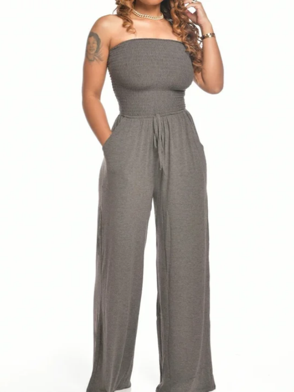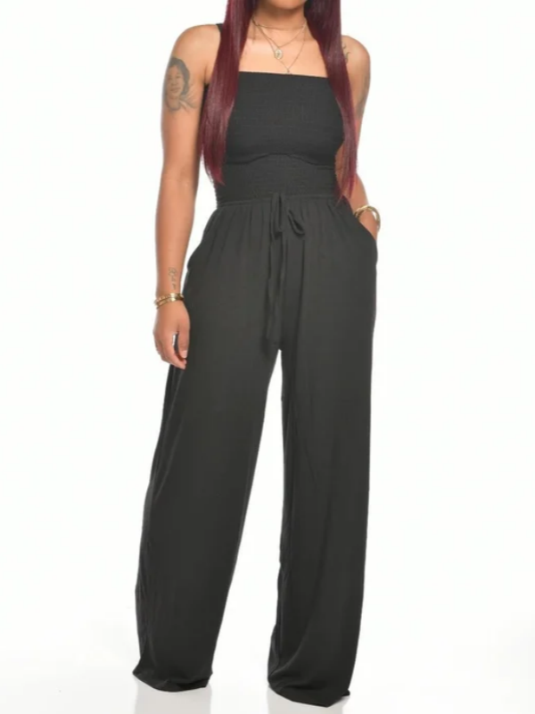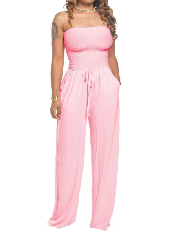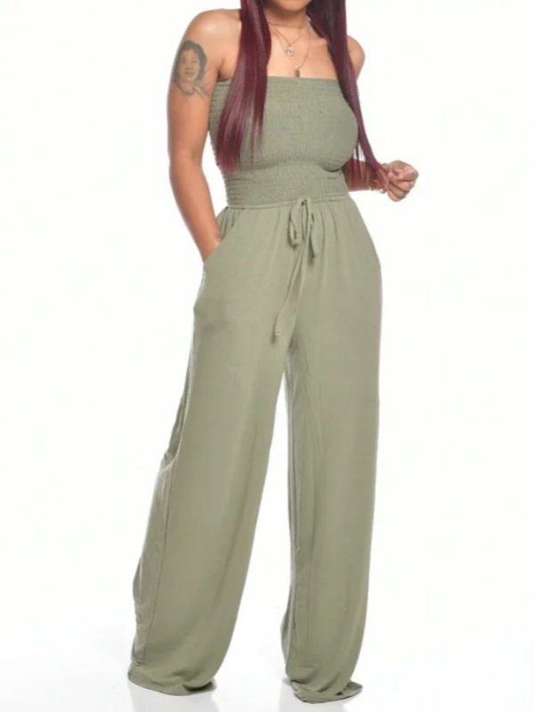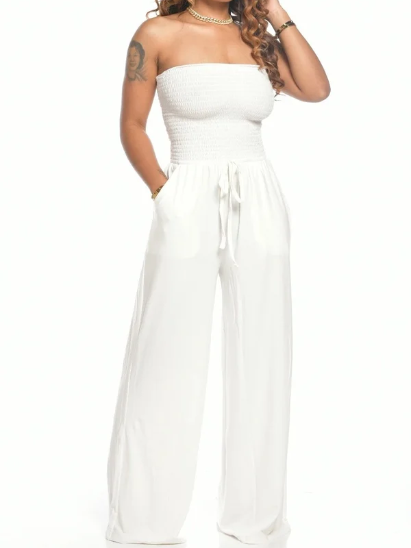 Newest Off Shoulder Solid Color Smocked Jumpsuit,you will love it
