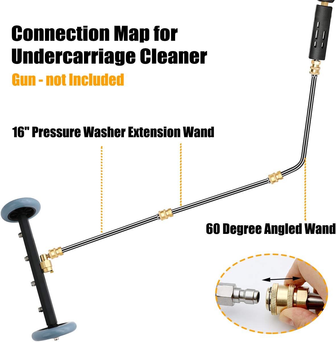 - User-Friendly Setup: Attach the straight extension wand to the undercarriage washer, connect the curved wand, and link to your pressure washer gun with ease.