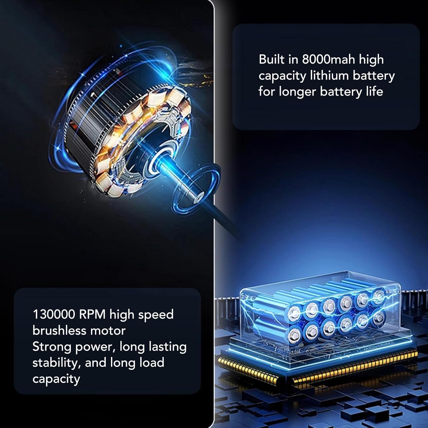 Ordinary hair dryers only have a rotation speed of 16,000 to 21,000 revolutions per minute and are only suitable for drying hair. However, our powerful turbine snow blower can reach as high as 130,000 revolutions per minute! What's more, it is smaller in size!