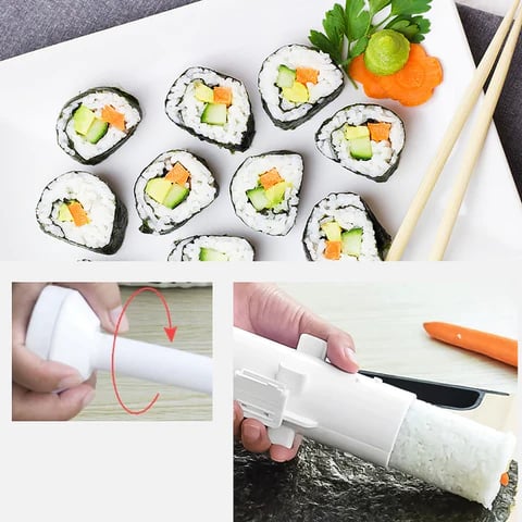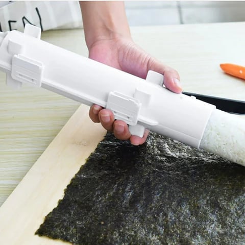 - LOCK AND LOAD, EASY TO USE: Making delicious sushi is now as easy as can be! All you have to do is open the sushi bazooka, "load" it with rice and other ingredients, close it and squeeze out your finished sushi!