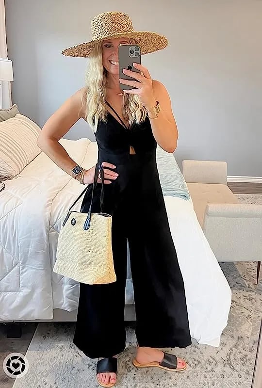 This casual rompers designed thick adjustable straps. The v-neckline, cutout front and backless design is perfect for hot summer days. The wide leg pants and high waist make it comfortable and suitable for any body shape. This rompers is a must have this summer!