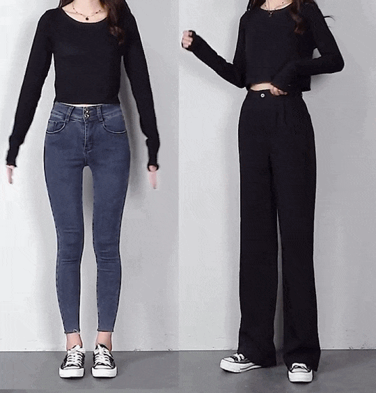 The pleated design well conceals fat on the leg, making your leg look slim and slender. Wide straight leg, lost fit Suitable for all women.
