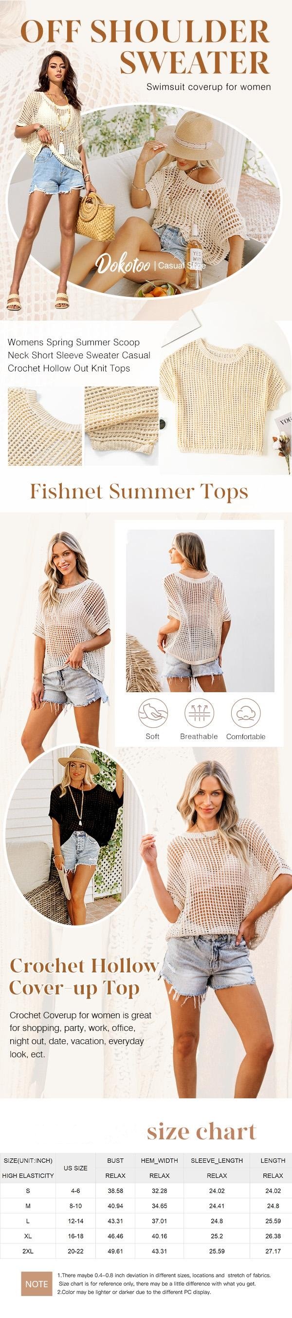 🎁 Womens Summer Scoop Neck ShortSleeve Sweater Casual Crochet Hollow Out KnitTops